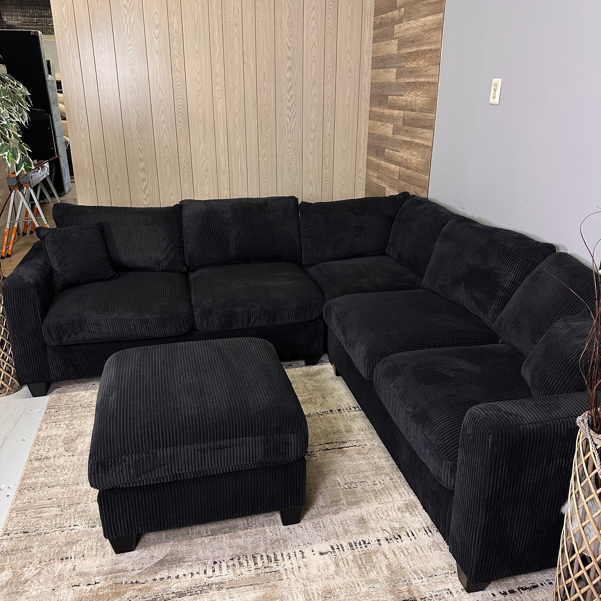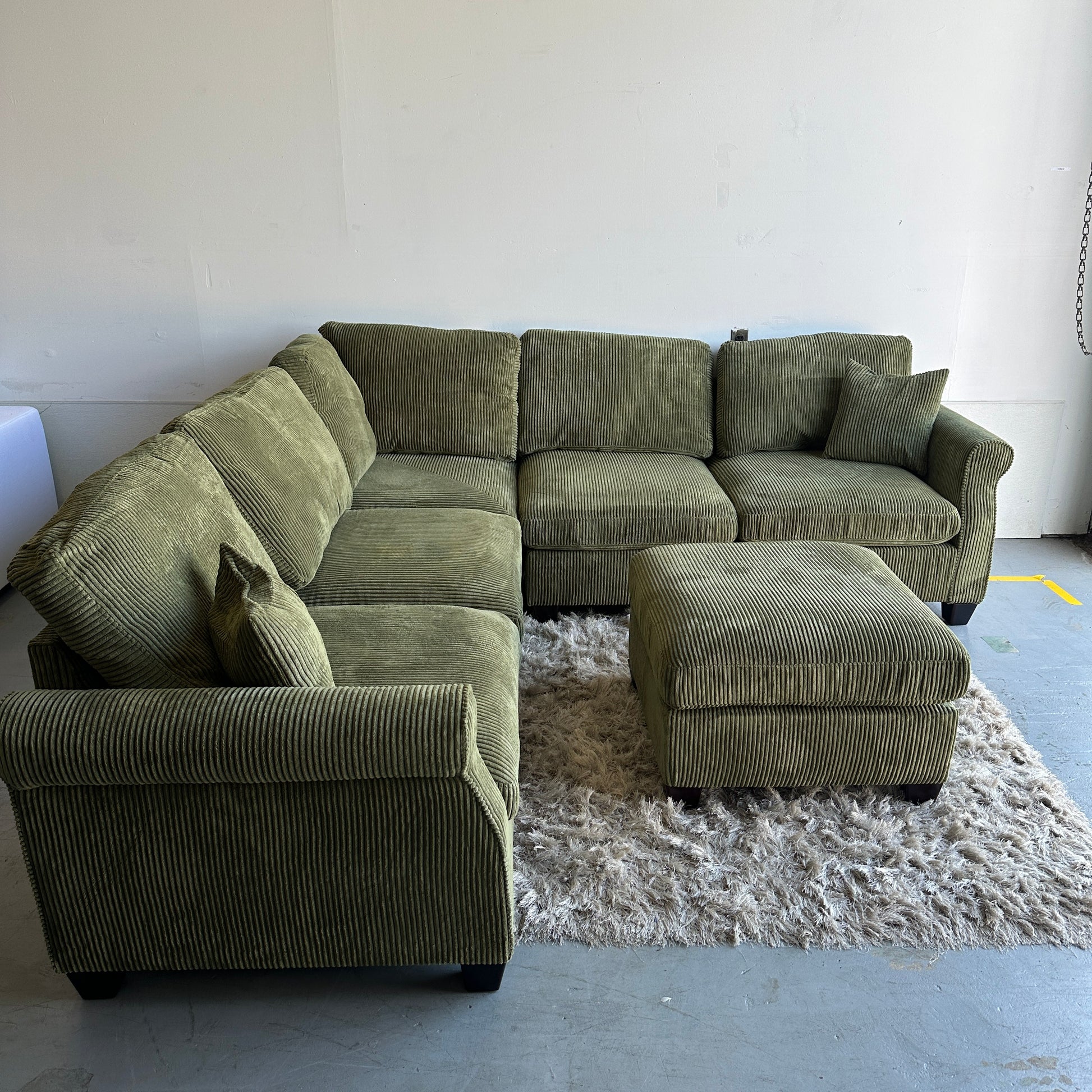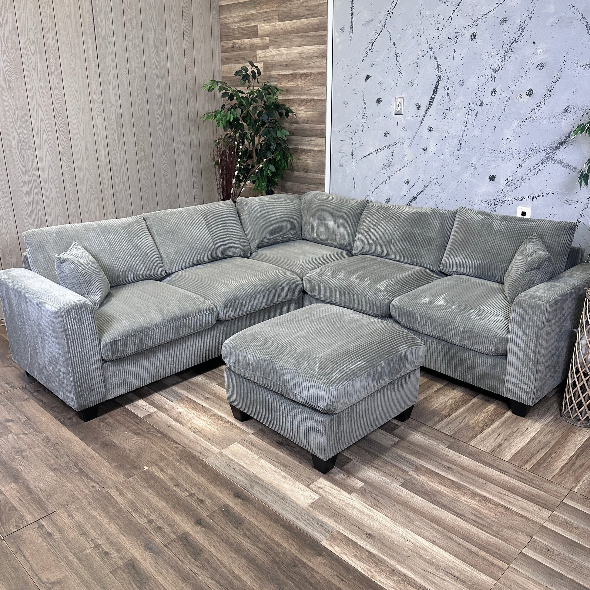 The modular design includes a left-side loveseat, a right-side loveseat, a corner wedge, and a matching ottoman making it easy to transport and move inside the home. This set comes brand new in three separate boxes, so it's easy to transport in a pickup truck or any larger vehicle. Some assembly is required upon delivery to set up your new couch. Available in four different colors to match any decor.