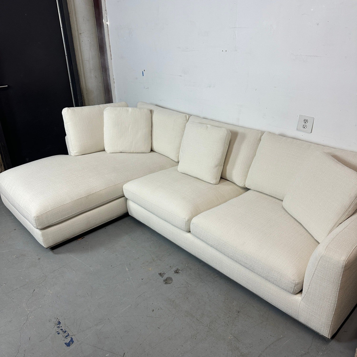 This Castlery Hamilton sectional is a customer return that was used for only about 3 weeks and is in great condition. Upholstered in performance fabric that’s designed to handle everyday use, spills, and pet-friendly living. It has extra-deep seating for comfortable lounging, removable cushion covers for easy cleaning, and clean metal legs that give it a modern profile. Comes with all the original throw pillows included.