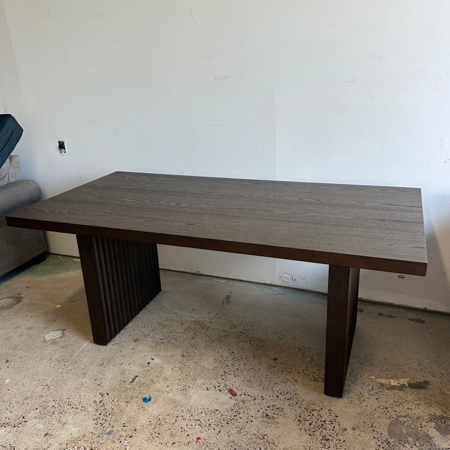 This Castlery Sloane Dining Table is a customer return item and was used less than a week, basically brand new. The tables fluted panel detailing and modern sculpted base gives the set a sleek and refined look.
