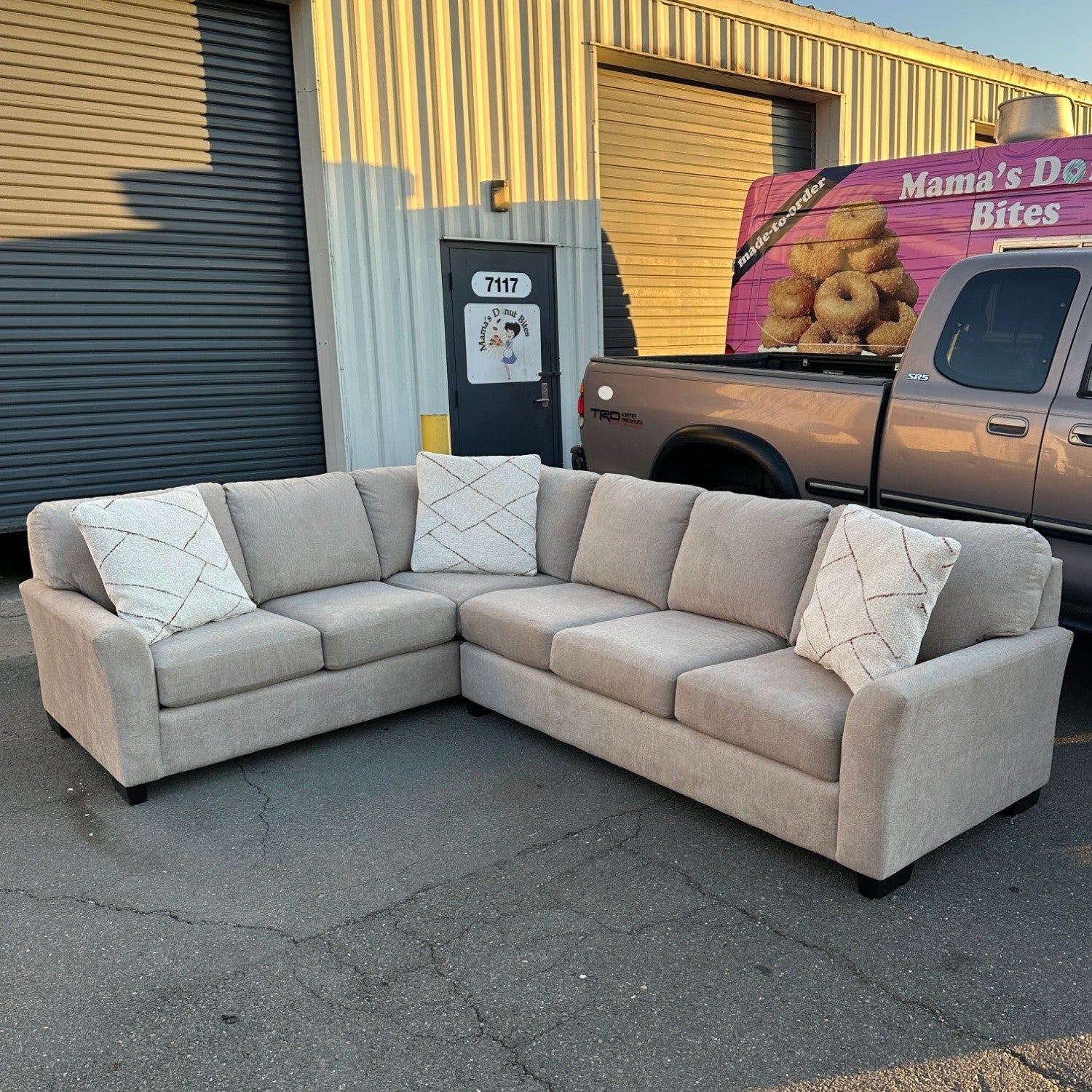 Grey L-Shaped Sectional with Pull-Out Bed • Retail $2,500 – Payment plans available!